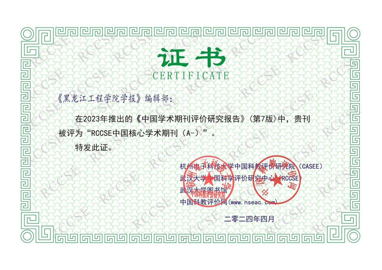 2024年4月份,杭州电子科技大学中国科教评价研究院、武汉大学中国科学评价研究中心(RCCSE)、武汉大学图书馆、中国科教评价网联合发布《中国学术期刊评价研究报告》(第7版),《黑龙江工程学院学报》被评为“RCCSE中国核心学术期刊”(A-)。